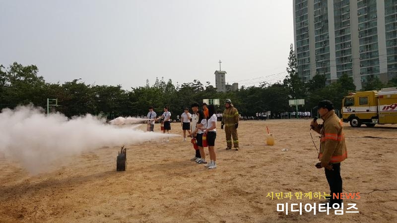 | 인천서부소방서, 가림고등학교와 함께하는 합동소방훈련 모습.<ⓒ미디어타임즈> |