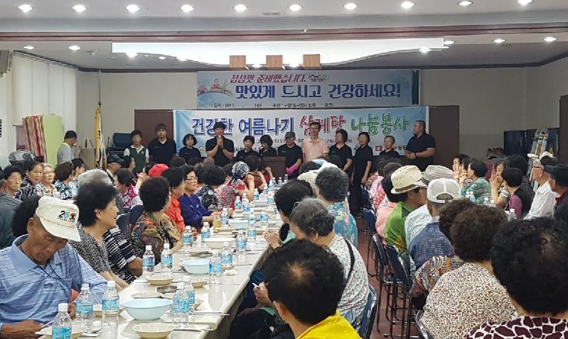 행사에 참석한 어르신들은 “불볕의 무더위도 아랑곳하지 않고 맛있고 정성스런 음식을 준비하고 대접해준 후원자분들과 봉사자분들께 감사드린다”고 말했다.