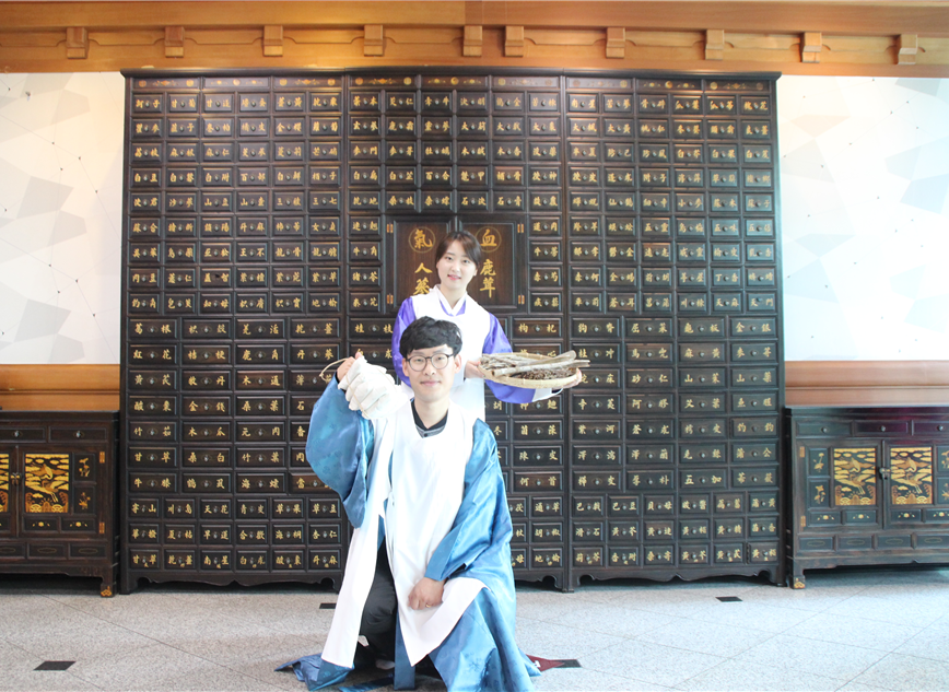 대구한의대학교 부속 포항한방병원(병원장 최해윤)은 최근 병원 입구인 1층 로비에 포토존을 설치하여 많은 내원환자들에게 관심을 받고 있다. 포항한방병원은 환경치료의 일환으로 현대건축의 외형에 친근한 한옥 인테리어로 힐링이 가능한 휴식공간을 제공하고 있으며, 탕전실이 지하에 위치해 있어 병원 전체에서 은은한 한약의 냄새가 풍겨 마음의 안정을 가져오게 만들었다. 이번 포토존 설치를 위해 한약재 장롱과 옛 조선시대 의원 복장 등을 구비하여 많은 내원환자들의 호기심을 자극하였고, 실제로 착용하여 사진을 찍을 수 있도록 만들었다. 이에 최해윤 포항한방병원장은 “다양한 서비스를 제공하여 내원환자들께서 병원을 좀 더 친근하고 자유롭게 쉴 수 있도록 만들 것이다.”고 전했다. 또한 무더운 여름철로 인한 더위를 식히기 위해 병원 측에서 오미자로 만든 슬러쉬를 제공하여 내원환자들이 자유롭게 마실 수 있도록 제공하였다.