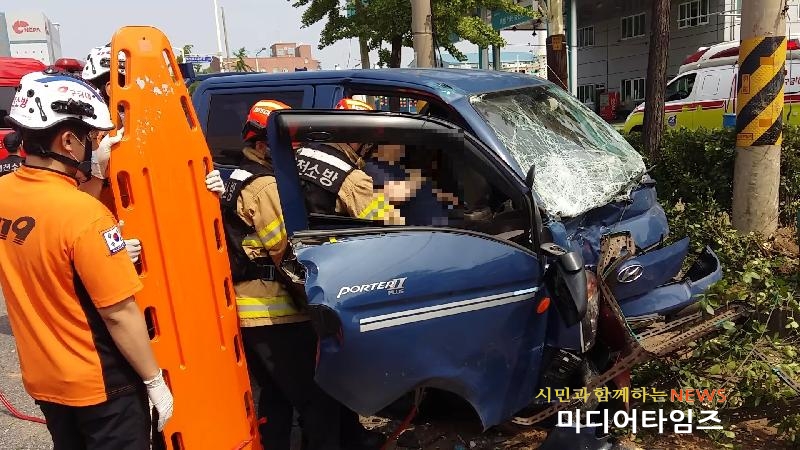 [미디어타임즈=문상수기자] 인천부평소방서(서장 노경환)는 지난20일 오전 10시 10분경 서구 가좌동 백범로 가스충전소 앞 도로상 십정사거리에서 가좌 IC방면으로 주행중이던 화물차가 단독으로 화단을 들이받아 1명이 다쳤다. 이 사고로 1톤 화물차 앞 부분이 크게 파손됐고 동승자 양모(여,50대)씨가 사고로 안으로 밀려온 대시보드에 다리가 끼어 출동한 구조대에 의해 구조되었고 다리와 가슴 등을 다쳐 인근 병원으로 이송됐다.한편 경찰에서 운전자와 목격자 등을 상대로 정확한 사고 경위를 조사하고 있다.