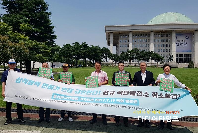 [미디어타임즈=문상수 기자] 강원 삼척석탄화력발전소건설반대 범시민연대(상임대표 이붕희)와 환경시민단체들은, 19일 국회정론관에서 기자회견을 열고 삼척포스파워 화력발전소의 발전사업권 취소를 촉구했다.삼척 범시민연대 이붕희 상임대표는 이날 기자회견에서 “삼척포스파워 석탄화력발전소의 각종 인허가 기한이 연장된 것은 명백한 산업부의 특혜 제공이므로 이에 항의한다”며 “삼척포스파워 최종 인허가 기한은 3차례 연장되었다”라고 밝혔다.산업부의 연장사유는 환경영향평가와 해역이용협의가 지연되어서 연장이 불가피했다는 입장은 삼척포스파워의 귀책사유를 묻지않은 것이다.그리고 “산업부가 포스파워의 특혜 의혹에 대하여 정부차원의 특별감사를 촉구할 것”이라며 “정부는 포스파워 인허가 기한연장 사유를 명백히 밝히고 삼척시민 모두가 납득할 수 있는 공청회를 진행하라”고 촉구했다.기자회견에서 환경시민단체들은 포스파워 삼척발전소는 이미 작년 12월에 공사계획 인가 기간이 한 차례 연장되어 4년여간 건설이 지연되어 왔다. 이 준비기간동안 포스파워는 환경부에는 환경영향평가 재보완 요청을, 해수부의 해역이용영향평가도 네번에 걸쳐 재보완을 요청을 받았지만 현재까지도 협의를 완료하지 못했다. 또한 석탄발전소 부지가 삼척시내에 위치해 있어 지역 주민의 반대의사가 있음에도 불구하고 지역주민의 동의를 받지 않아 지역 수용성에도 문제가 있다. 모든 경우를 함께 볼 때 사업자가 기간내에 공사계획인가 승인을 받지 못한 것은 부실한 발전 사업준비에 대한 방증이다.전기사업법에는 산업부가 고시한 시점까지 정당한 사유 없이 공사계획 인가를 받지 못해 공사에 착수하지 못한 경우, “허가를 취소해야 한다”고 규정한다. 지난 5월에 통영LNG발전소가 주어진 기간 내에 공사에 착수하지 못하여 발전사업권이 취소된 바 있다. 이번 삼척포스파워 화력발전소의 계획도 허가 취소 사유에 해당되지만, 공사계획 인가기간을 추가로 더 연장한 것은 명백한 특혜 의혹 이라고 할 수 있다.미세먼지와 온실가스 배출을 동시에 잡기 위해서는 현재 계획중인 석탄발전소를 백지화하고, 노후발전소를 함께 줄여나가야 한다. 산업부와 산업부장관 후보자는 향후 포스파워 삼척발전소를 시작으로 현재 사업이 지연되고 있는 9기의 신규 석탄발전소와 포천 석탄화력 등 신규 석탄발전소 계획을 백지화하고, 석탄발전소 비중감축과 노후 석탄발전소의 조기폐쇄를 밟아나가야한다.고 목소리를 높혔다.김선홍 글로벌에코넷 상임회장은 "삼척지역 주민들 간의 민.민 갈등은 계속 되고 있으며, 지난 18일에는 ‘삼척시 환경운동연합회’와 ‘월남참전용사 삼척시지회’ 관계자 등 40여 명은 청와대앞에서 ‘포스파워 삼척화력발전소 건설촉구 결의대회’를 개최하고 건의서를 전달했고,19일에는 삼척석탄화력발전소건설반대범시민연대(범시민연대) 등 국회 정론관에서 삼척포스파워 화력발전소의 발전사업권 취소 촉구 기자회견을 개최하였다며", "포스코에너지는 삼척 포스파워의 모회사로 지금까지도 삼척 지역주민들을 둘로 나뉘게 하고 맹방해변을 망치는 석탄 화력발전사업에서 즉각 철수"를 주장하고 나섰다.한편 포스코 에너지가 지난 2011년 인천 서구 포스코 LNG발전소 7,8,9호기 증설시 굴뚝경관 6개를 1개 통합굴뚝 으로 공약후 건축물 완공시 막대형 굴뚝으로 변경 대하여 포스코에너지에 대한 인.허가과정 의혹을 제기하며 인천서구청라지역과의 상생을 위하여 인천 포스코에너지의 7,8,9호기 건설시 모든 의혹에 대한 진정한 사과 또한 촉구했다.