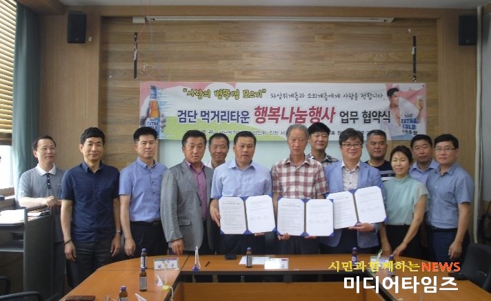 | 검단먹거리타운 행복나눔행사 업무협약서(MOU) 체결 모습.<ⓒ미디어타임즈> |