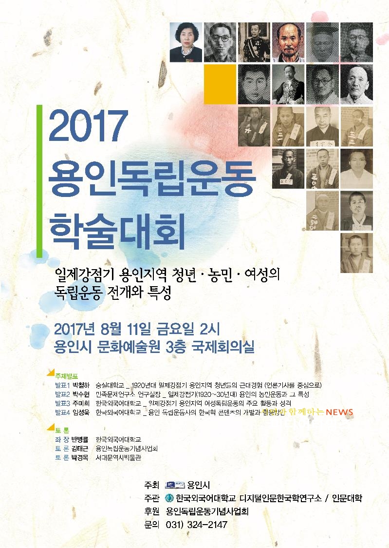 [미디어타임즈= 이영희 기자] 용인시는 광복 72주년을 앞두고 그동안 제대로 알려지지 않은 일제강점기 용인의 독립운동을 조명하는 학술대회를 오는 8월11일(금) 오후2시 시청 국제회의실에서 개최한다고 밝혔다.