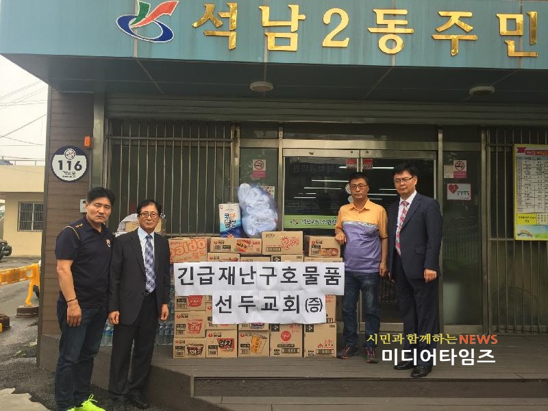선두교회 이웃사랑실천위원회는 호우경보가 발령된 지난 23일 긴급회의를 열어 관내 수해민들의 피해를 확인하고 생수, 라면, 햇반, 세면도구 등 180만원 상당의 구호물품을 석남2동 주민센터에 전달했으며, 전달된 물품은 당일 통장들을 통해 피해 가구에 배부됐다.