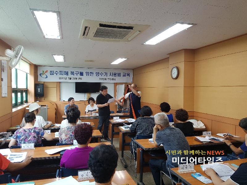 | 가정3동, ‘양수기 사용법 교육 모습.<ⓒ미디어타임즈> |