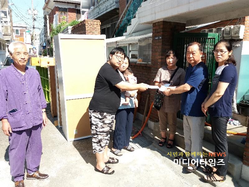 | 일신동 수재의연금 전달 사진. <미디어 타임즈> |