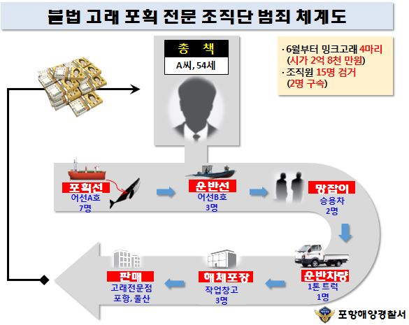 | 불법 고래포획 범죄 체계도<미디어 타임즈> |