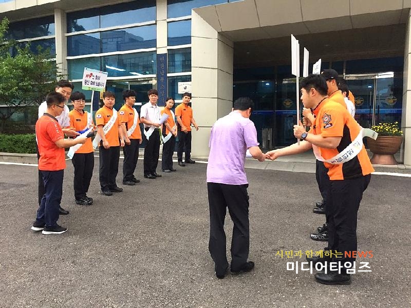 [미디어타임즈=문상수 기자] 인천남부소방서(서장 김성기)는 31일 오전 청렴한 공직문화 정착과 전 직원의 청렴마인드 함양을 위해, 직원들의 출근시간에 맞춰 청사 앞에서 ‘청렴캠페인’을 전개했다.이번 캠페인은 공직자가 기본적으로 지향해야 하는 청렴한 공직문화 정착을 위해, 직원 20여명과 함께 어깨띠와 피켓을 들고 공무원 행동강령 청렴 전단지를 배부하며 ‘깨끗한 공직사회 분위기’를 조성하기 위해 실시했다.소방서 관계자는 “사전 예방적 청렴관리시스템을 운영하여 깨끗하고 투명한 조직문화를 만드는 것이 이 캠페인의 목적이며, 앞으로도 친절하고 투명한 소방조직의 모습으로 시민이 우리를 믿고 의지할 수 있도록 청렴도 향상에 만전을 기할 것”이라고 전했다.