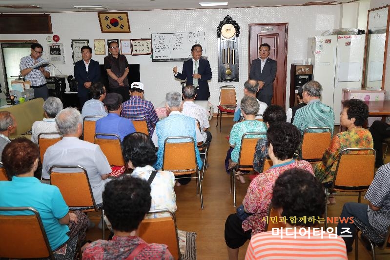 [미디어타임즈=문상수 기자] 김홍섭 인천 중구청장은 최근 장마와 폭염 날씨 속에서 경로당을 이용하고 계시는 어르신들의 안전 확인과 불편사항 해결을 위해 지난 7월 24일부터 8월 25일까지 76개소 경로당 방문에 나섰다.도원동을 시작으로 하루에 4∼6개소로 방문하여 경로당별 냉방 시설을 확인하고 불편 사항을 청취하여 폭염시기에 어르신들이 안전하고 건강하게 생활을 할 수 있도록 조치하고 나아가 노인여가시설의 활성화 방안을 찾아 노인복지정책에 적극 반영해 나갈 계획이다. 김홍섭 구청장은 그 자리에서 관계부서 및 주민센터에 관내 어르신들이 불편함이 없도록 지속적으로 관심을 가져 줄 것을 당부하였다.한편 구에서는 어르신들이 경로당에서 안전하게 여름철을 보내도록 하기 위해 냉방비 600만원과 생활 집기 등을 지원하고 시설 노후화로 불편이 있는 경로당의 개보수 사업을 적극 추진하고 있다.