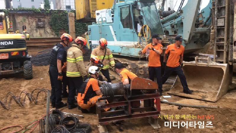 | ]인천서부소방서, 신축건물 공사현장 철근 관통사고 긴급구조 모습.<ⓒ미디어타임즈> |