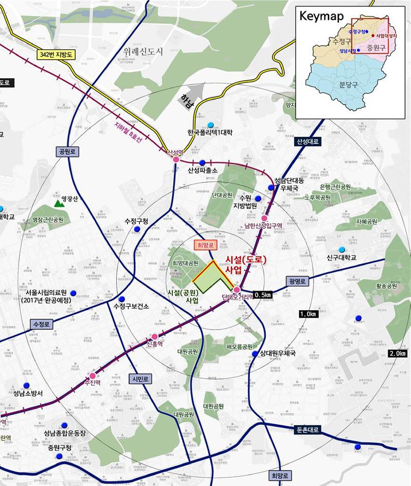 | 성남시 1공단 공원부지 주변 도로 확장 위치도. |