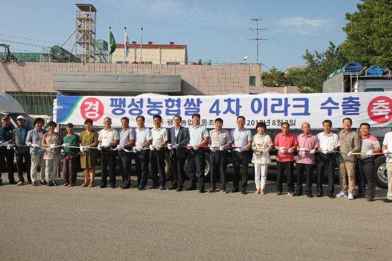 지난 2014년 11월 팽성농협쌀을 이라크 비스마야 신도시 건설 현장에 첫 수출을 시작으로 2015년 3월, 2015년 9월 총 3차례에 걸쳐 쌀 40톤(2,000포/20kg)의 수출실적을 달성하였고, 이달에 4차례 쌀 16톤(800포/20kg)을 수출한다.