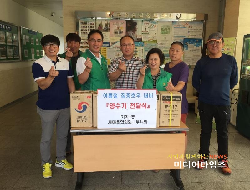[미디어타임즈=홍기연 기자] 가좌1동 새마을협의회·부녀회(회장 김성재·이문자)는 지난 8월 2일, 최근 폭우로 인해 침수 피해를 입은 가정을 위해 사랑의 후원물품(양수기 5대)을 전달했다.