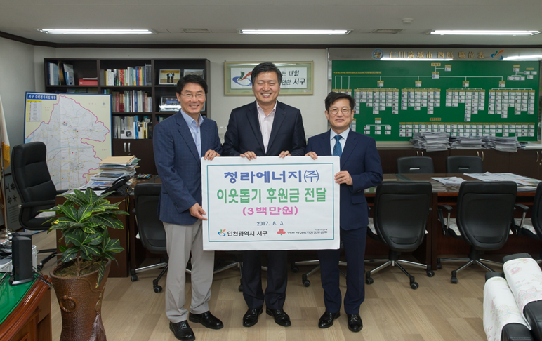 강범석 서구청장은 “연말연시나 명절 등이 아니어도 우리 주변에는 늘 도움을 필요로 하는 어려운 이웃들이 많은데, 이렇게 잊지 않고 좋은 일에 쓰라고 후원금을 주신 청라에너지에 진심으로 감사드린다”면서 앞으로도 지역사회의 어려운 분들에 대해 지속적으로 관심을 가져 달라고 당부했다.