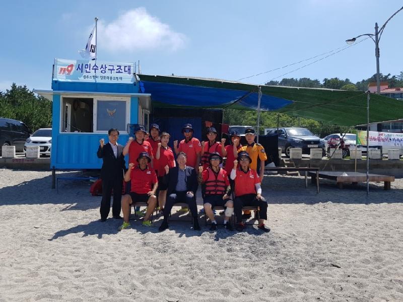 [미디어 타임즈 = 배수남 기자] 안태현 경주소방서장은 8월 4일 여름철 해수욕장 피서객들의 물놀이 안전사고 예방을 위해 관내 해수욕장 5개소에서 활동 중인 119시민수상구조대를 방문하여 노고를 격려했다. 경주소방서 119시민수상구조대는 7월 6일 발대식을 갖고 7월 14일부터 8월 20일까지 총 38일간 오류·전촌·봉길·진리·관성해수욕장 등 5개소에 총 97명이 배치되어 여름철 피서객 급증에 따른 물놀이 안전사고 예방에 만전을 기하고 있다. 119시민수상구조대는 평상시 예방순찰, 심폐소생술 교육, 해파리제거 및 안전사고 예방 캠페인 등 다양한 활동을 펼치고 있으며, 특히 금일 격려방문 중 오류해수욕장에서 튜브를 타고 물놀이를 하던 40대 남성이 파도에 안전선 밖으로 밀려나가는 사고가 발생하여 119시민수상구조대가 구명튜브를 이용해 구조하기도 했다. 안태현 경주소방서장은 ‘연일 계속되는 폭염에도 지역사회를 위해 애쓰고 있는 119시민수상구조대원들에게 감사드리며, 남은 기간 동안에도 시민들이 안전하고 건강한 물놀이를 즐길 수 있도록 119시민수상구조대 운영에 최선의 노력을 다해주기를 당부드린다.’고 전했다.