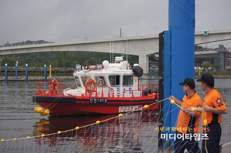 [미디어타임즈=홍기연 기자]인천서부소방서(서장 김준태)는 경인아라뱃길 수난사고 조기수습을 위한 유실방지용 그물을 제작했다고 10일(목) 전했다.경인아라뱃길은 수심 6.3미터 X 폭 80미터로 수질오염방지 등을 위하여 서해 바닷물을 수시로 여닫고 조류흐름이 수시로 바뀌거나 기상악화 등을 원인으로 수난사고 발생 시 사고지점을 정확하게 특정하기 어려워 수난사고 수습작업이 어렵다.이에 인천서부소방서는 한국수자원공사 아라뱃길 관리단과 협조하여 수난사고 조기수습을 위한 유실방지용 그물을 수심 7미터 X 폭 100미터의 크기로 특수제작하였다. 특히 붉은 색의 부표를 그물에 달아 탐색하는 범위를 정확하게 외부에서 보기 쉽도록 하여 원활한 수난사고 구조작업 작전수행에도 큰 힘이 될 것으로 보고 있다. 앞으로 아라뱃길 수난사고 발생 시 적극 활용토록 할 예정이며, 10일(목) 오전에 요구조자 유실 대비 구조훈련을 실시했다.소방서 관계자는 “익수자 발생 시 아라뱃길의 조류흐름 변화 등의 이유로 조기수습에 어려움이 있었으나, 제작한 그물을 활용하여 사고발생 시 조기수습에 큰 도움이 될 것으로 기대된다고 말했다.한편, 아라뱃길에서는 최근 3년간 서구 관내 수난사고가 25건 발생하여 6명이 사망한 바 있다.