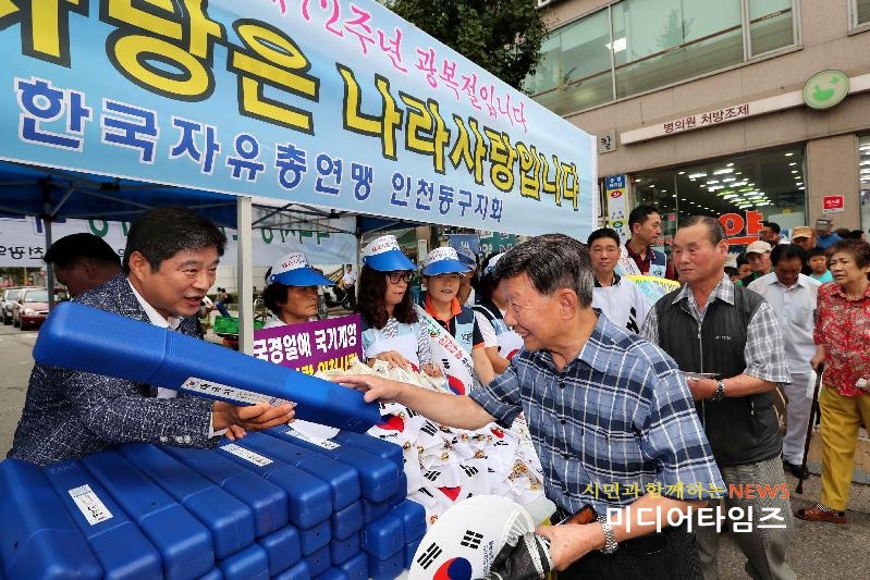 | 자유총연맹 동구지회 나라사랑 태극기달기 운동 사진. <ⓒ미디어타임즈> |