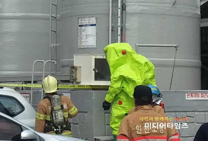 | 화학물질 사고 대비 소방훈련 사진. <ⓒ미디어타임즈> |
