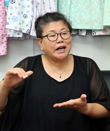 주 씨는 청실홍실 봉제마을 공동작업장에서 봉제일을 배우고 현재는 꿈한타래 생산자 협동조합 이사로 일하고 있다.