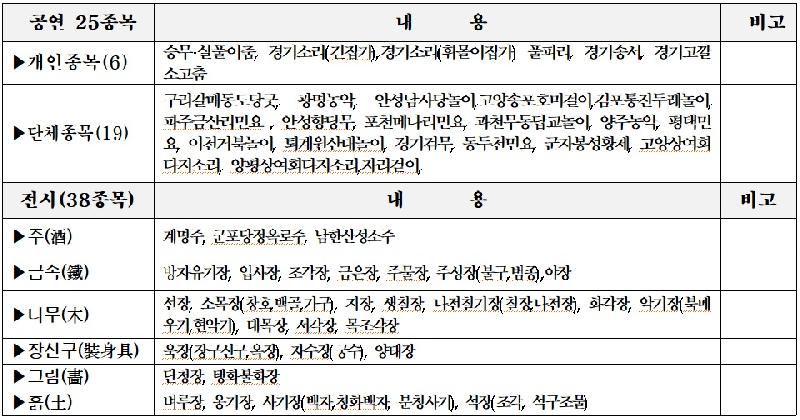 무형문화재 중요성은 유형문화재와 달리 사회변동과 더불어 급속히 변화되어 현실생활에서 지속적으로 전승하며 대를 물려 전수하고 대를 이어 익히지 않으면 문화의 생명력을 잃게 된다. 무형문화재 38개 기능 종목 100여 작품과, 25개의 예능 종목이 한 자리에 모인 자리에서 진행되는 이번 행사를 통해 전통 문화유산으로 민족의 삶과 정서를 배우고 우리 문화적 우수성과 예술성을 지속적으로 보존하고 발전하는 계기가 될 것이다.