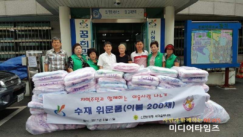 [미디어타임즈=홍기연 기자]인천 서구 신현원창동 새마을부녀회(회장 박이숙)는 지난달에 발생한 집중호우로 수해를 입은 지역 주민들을 위해 지난11일 이불 200채를 신현원창동 주민센터에 전달했다.