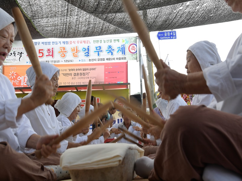 축제 첫날인 11일에는 다듬이돌 두드리기와 ‘2017 신나는 예술여행 - 마당극패 우금치 공연’으로 흥을 돋운 후 황명선 논산시장, 지역 기관단체장 등이 참석한 가운데 내빈소개, 축사 및 콩밭열무 비빔밥 만들기 체험으로 진행됐다.