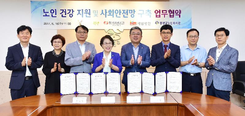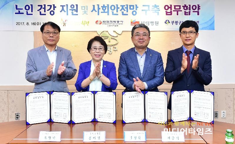 | 부평구 노인건강지원 및 사회안전망 구축사업 업무협약 모습. <ⓒ미디어타임즈> |