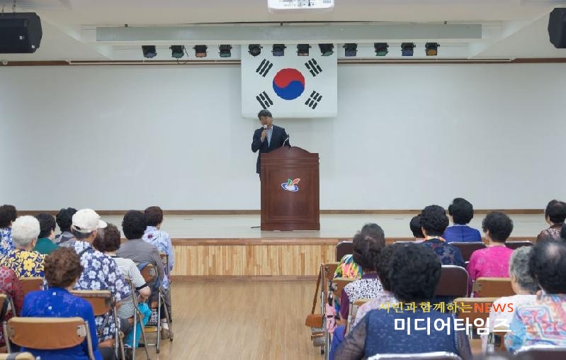 | 강범석 서구청장 서구노인대학 특강 모습.<ⓒ미디어타임즈> |