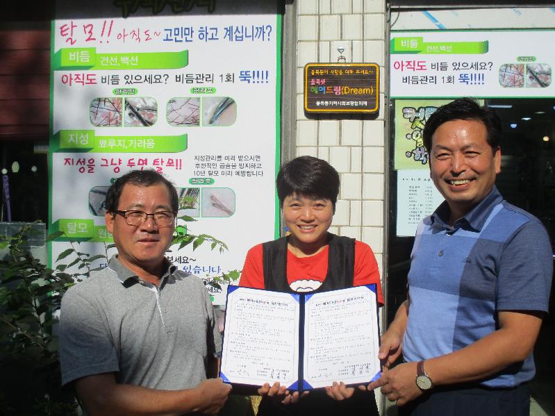 [미디어타임즈=문상수 기자] 인천중구 율목동 지역사회보장협의체( 공동 위원장 김세열, 류한상 )는 지난 17일, 관내 대우이발관(대표 손명원)과 끼머리방(대표 이순기)을 방문하여 「헤어드림(Dream)」현판 전달 및 업무협약을 맺었다.「헤어드림(Dream)」사업은 율목동 특화사업 중에 하나로 관내 아동에게 이·미용 쿠폰을 지원하여 헤어서비스를 제공하는 사업이다. 이번 협약을 통해 관내 아동에게는 헤어서비스 제공함에 상호 협력하고, 사각지대에 놓인 아동 가구를 발굴하는 데도 상호협력하기로 하였다.류한상 위원장은 “이번 협약을 통해 사업이 활성화되어 많은 아동이 서비스를 받았으면 좋겠다.“ 고 말했다.