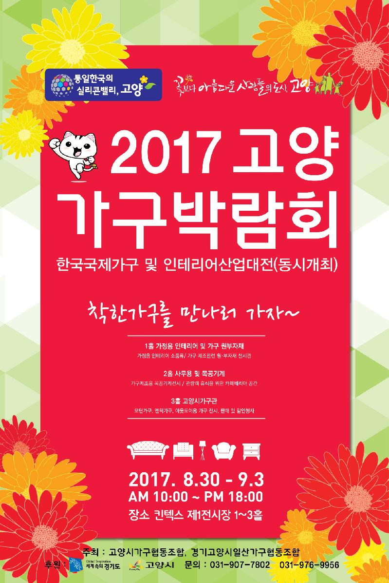 시 관계자는 “고양가구박람회는 고양국제꽃박람회와 더불어 고양시를 대표하는 박람회로 자리매김하고 있다”며 “‘2017 고양가구박람회’를 충실하게 운영해 국내 최대 가구유통단지 이미지를 전국적으로 홍보하고 고양시를 대표하는 산업축제로 발전시켜 나가겠다”고 밝혔다.