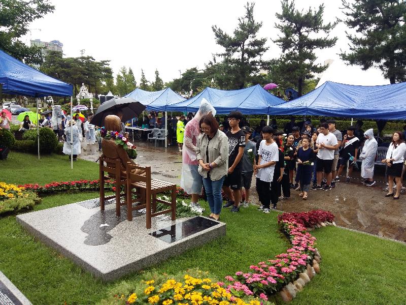 이날 기념식은 박수근 시인의 ‘이름 피우지 못한 소녀야’ 헌시 낭독, 헌화, 대금연주와 현대퍼포먼스 ‘가시리’ 공연을 통해, 위안부 피해자 분들의 상처를 어루만지며 다시는 우리 미래에 쓰라린 아픔의 역사가 반복되지 않기를 바라는 마음을 담았다.