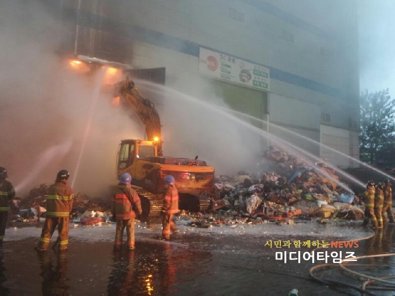 | 인천서부소방서, 폐기물처리업체 화재 진압 모습.<ⓒ미디어타임즈> |