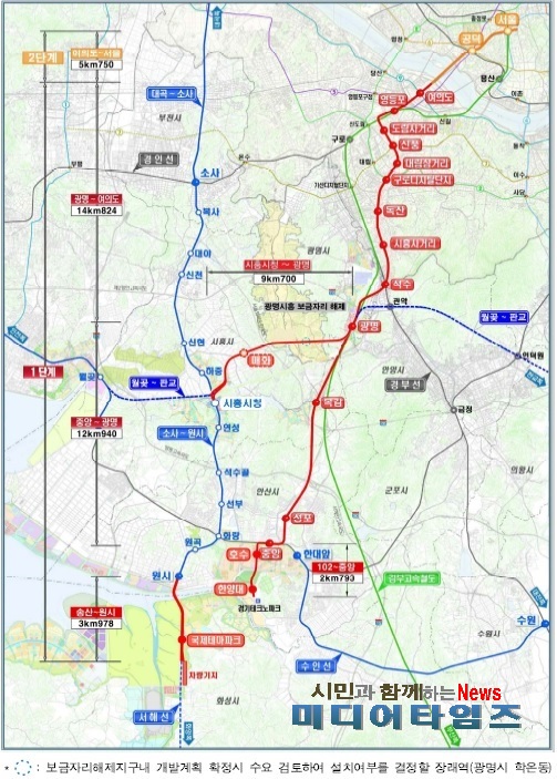 국토부 관계자는 "신안산선은 안산·시흥~서울역을 2단계로 나누어 추진하는데 우선 1단계로 안산·시흥~여의도 구간을 건설하고, 2단계 여의도~서울역 구간은 타당성 재조사 중인 월곶~판교 복선 전철 추진 여부 등 주변 여건 변화를 고려해 2018년경 타당성 분석에 들어갈 계획이다"고 전했다.