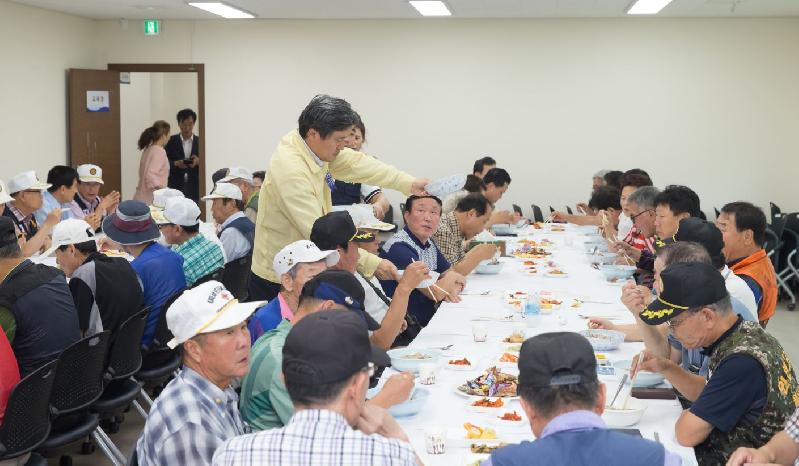 이날 재향군인회 여성회 회원 20여명은 이른 아침부터 나와 회원들이 직접 닭을 손질하고 과일, 밑반찬 등을 마련해 200여명에게 건강한 점심을 대접했다.