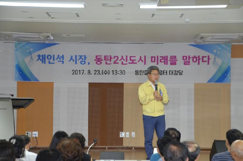 시는 프리젠테이션을 통해 ‘문화 복지 등 공공시설 조성’을 비롯하여 ‘대중교통 여건 개선’, ‘동탄호수공원 조성’, ‘세계바둑 스포츠 콤플렉스 건립’에 대한 현황과 계획을 설명했다.