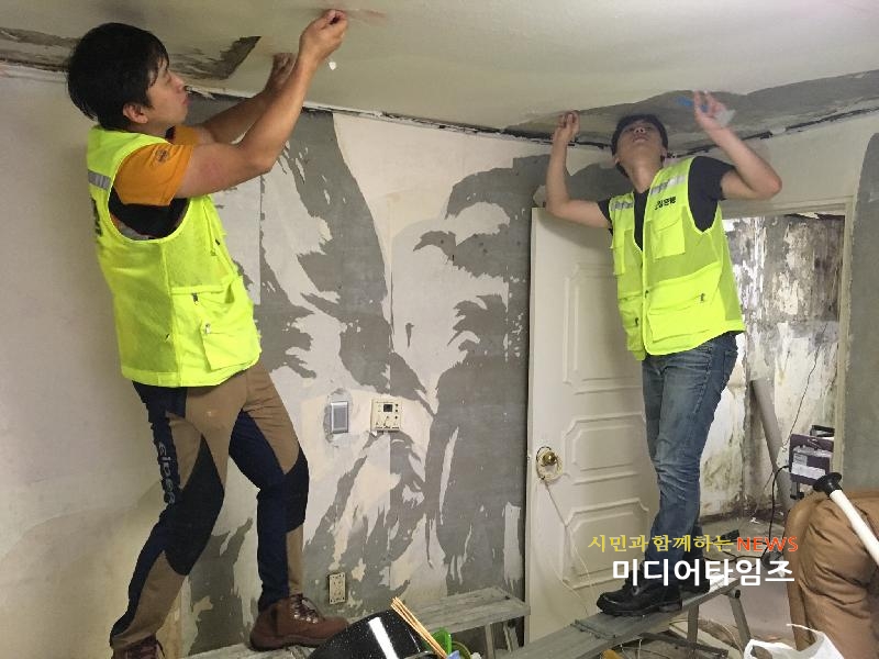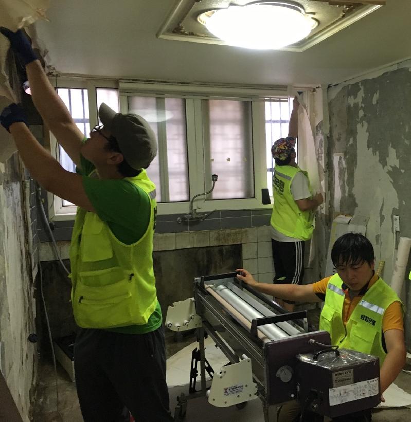 [미디어타임즈=문상수 기자] 인천 남구(구청장 박우섭)가 운영하고 있는 ‘청년 공가 리모델링 전문가 양성과정’ 교육생들이 침수 피해를 입은 저소득층을 위한 재능 나눔을 실시했다.교육생들은 긴급지원이 필요한 주안4동과 학익1동 2가구를 추천받아 지난 23일부터 25일까지 3일간 도배와 장판 무료시공 봉사활동을 전개했다.장판과 도배지 등 구입은 사회복지공동모금회 예산을 지원받았다.구 관계자는 “이번 재능 나눔활동은 청년과 주민이 같은 공동체로 공존하면서 실질적인 환경개선에도 기여하는 모범사례가 됐다”고 말했다.한편 남구가 운영하고 있는 청년 공가 리모델링 전문가 양성과정은 원도심 지역인 남구에서 증가하는 폐·공가와 지역 청년들의 실업문제를 해결하기 위해 진행되고 있다.남구와 고용노동부, 남구사회적경제지원센터가 함께 진행하는 2017년 지역산업맞춤형 일자리창출사업으로 6월19일에서 8월22일까지 15명의 청년들을 대상으로 공가를 직접 리모델링하면서 전문기술을 배우는 교육으로 진행됐다.교육생들은 건축법 등 이론을 비롯해 목공과 전기, 상하수도, 미장, 타일, 도배장판 등 전공이나 건축현장에서도 배우기 힘들었던 현장실습 위주의 교육을 받았다.교육 이수자들은 리모델링 관련 분야에 취업하거나 창업할 예정이다.