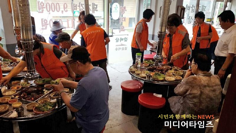 | 독정골한사랑회 어르신에 갈비 대접 사진. <ⓒ미디어타임즈> |