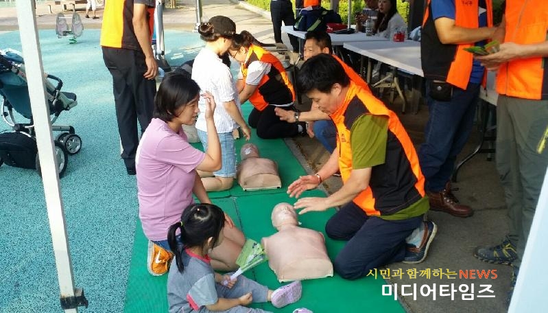 [미디어타임즈=홍기연 기자] 인천서부소방서(서장 김준태) 가좌남성의용소방대 12명은 지난 26일(토) 오후 17시에 지역 문화축제인 ‘2017년 건지골 축제와 함께하는 동서양 음악회’와 연계하여 119수호천사 심폐소생술 체험 코너를 운영했다고 전했다.주요내용으로는 ▲심폐소생술 실시요령 시범 및 체험 교육▲자동제세동기 사용방법▲기도폐쇄 응급조치 등에 대한 실습 체험이다.부모님의 손을 잡고 온 아이들부터 어르신들까지 남녀노소 누구나에게 심폐소생술 체험의 기회를 제공하고, 양질의 심폐소생술을 할 수 있도록 자세도 바로잡아 주는 등 전문의용소방대로서의 역할을 톡톡히 해냈다는 후문이다.한편 가좌의용소방대 4명은 2017년에 대한응급구조사협회의 ‘심폐소생술 교육강사’ 자격증을 취득하여 관내 지역행사 및 공공기관 등에서 심폐소생술 체험교육을 실시하여 지역사회 안전문화 확산에 크게 이바지 해오고 있다.한기복 대장은 “시민들의 반응이 좋아서 보람을 느낀다”며 “앞으로도 서부소방서 의용소방대는 시민의 안전 지킴이로서 최선을 다할 것”이라 말했다.