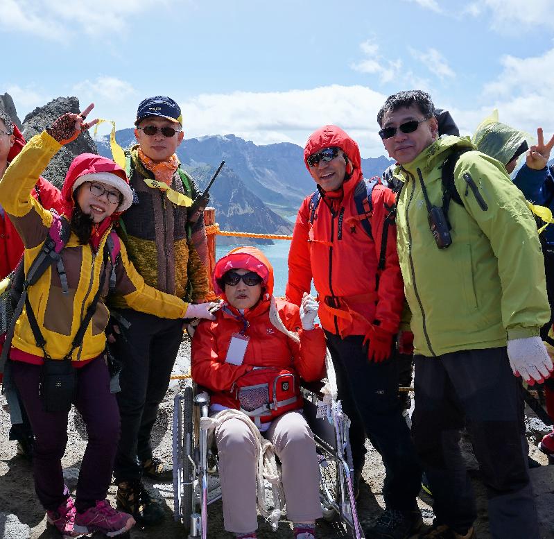 1442계단을 오르며 백두산 정상에 오른 시각장애인 김정숙씨는 “백두산 정상에 오른 것이 기적이고 내 인생의 최고의 날”이라며 눈물을 흘렸다.