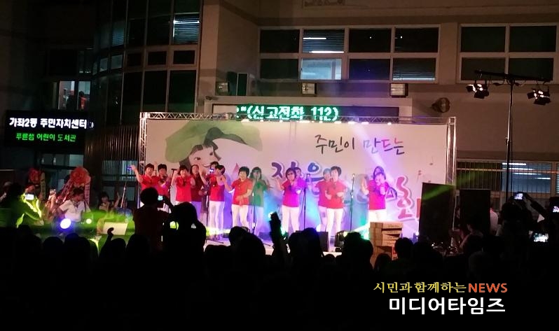 같은 날 저녁 6시부터 9시까지는 주민들과 아이들이 직접 연주하고 노래하는 작은음악회를 동 주민센터 앞마당에서 열었다.