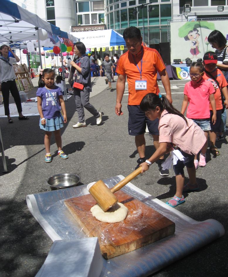 이날 행사는 어린이 자원봉사단인 ‘푸른샘 해결단’ 소개를 시작으로 떡메치기, 비석치기, 사방치기, 모기퇴치제 만들기 등 어린이들을 위한 다양한 체험활동과 전래놀이가 진행됐다.