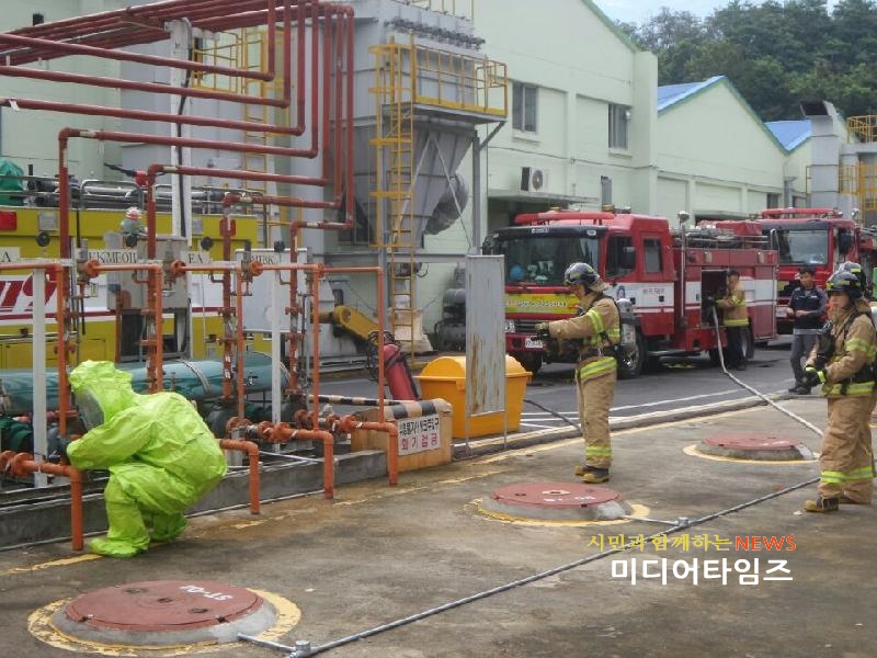 [미디어타임즈=홍기연 기자]인천서부소방서(서장 김준태)는 지난 29일(화) 서구 당하동에 위치한 벽산페인트 공장에서 화학사고 등 현장 대응력 강화를 위한 불시출동 훈련을 실시했다고 전했다.이번 훈련은 벽산페인트 내 옥외저장소에서 “톨루엔” 누출 및 화재발생에 대비한 것이다.인천서부소방서 지휘차 등 6대의 차량과 18여명의 소방대원과 벽산페인트 관계자가 투입된 가운데 실시된 훈련은 ▲ 훈련대상처 위험물 및 유해화학물질 취급현황 및 위험요소 전파 ▲ 신고 시부터 현장 도착 시까지 출동대원 대응요령 전파·인지 ▲ 현장출동 중 매뉴얼에 따른 개괄적 대응작전 수립 및 현장활동 전개 ▲ 위험물 및 유해화학물질 사고 출동단계별 절차(흐름도) 숙지 훈련 등을 중점으로 진행됐다.소방서 관계자는 “지속적인 훈련을 통해 신속하게 대응하는 시스템을 갖춰 유해화학물질 사고발생 시 사고피해를 최소화하기 위한 위기 대응능력을 배양할 것”이라며 “앞으로도 조기수습 지원체계를 확립해 유해화학물질사고로부터 안전한 서구를 만드는데 노력할 것”이라고 말했다.