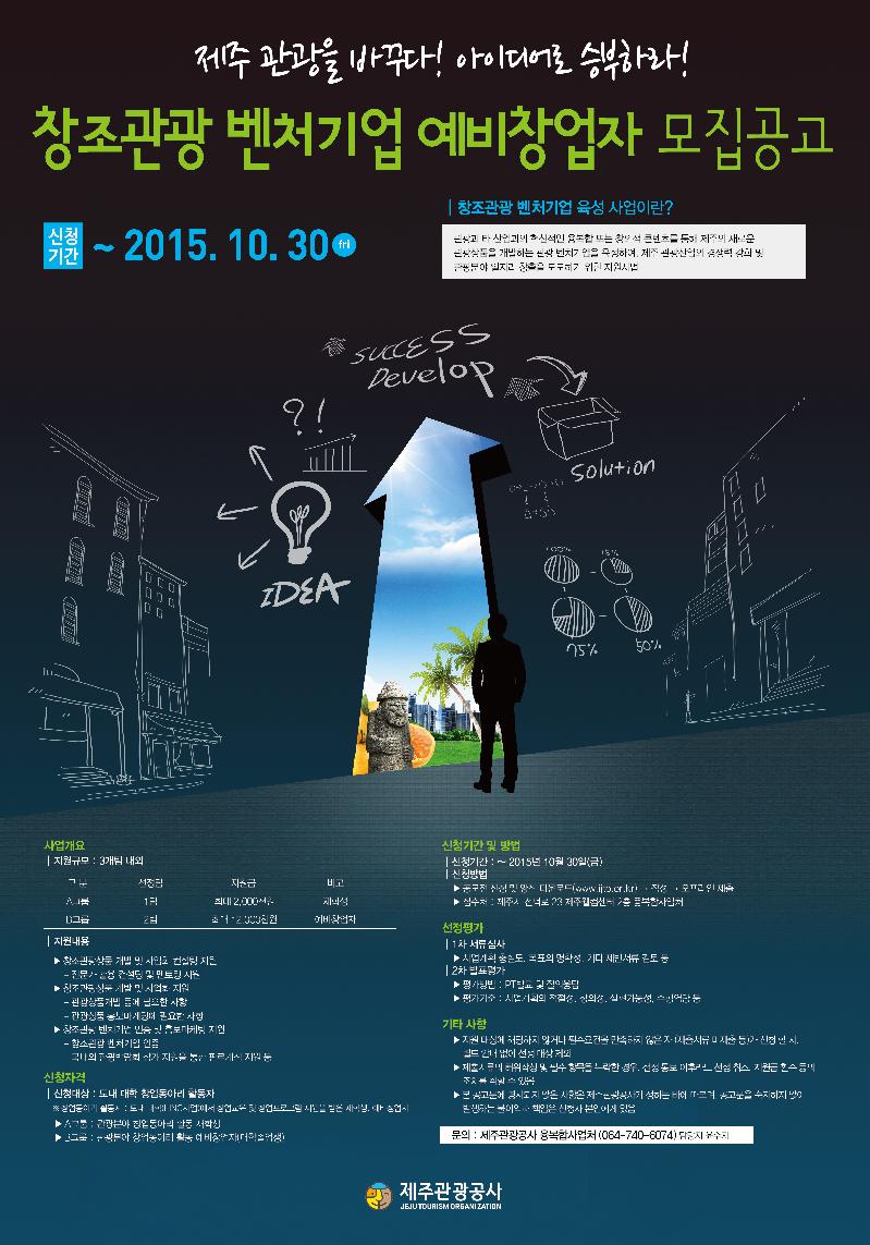 제주관광공사 관계자는 “이번 창조관광 벤처기업 예비창업자 모집을 통하여 뛰어난 아이디어를 보유한 학생 및 예비창업자를 발굴하고 산학협력을 통해 융복합 창조관광의 새로운 모델을 정립할 수 있는 계기가 될 것”이라고 전했다. // 이옥수 기자