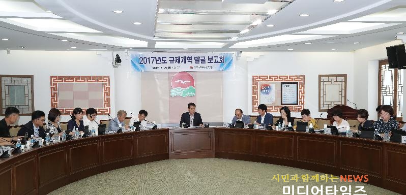 [미디어타임즈=문상수 기자] 인천 중구는 지난 29일 구청 서별관 소회의실에서 정창래 부구청장 주재로 구 본청 및 보건소 부서장 등이 참석한 가운데 규제개혁 과제 발굴 보고회를 개최했다. 이번 보고회는 새 정부 출범의 핵심 과제인 일자리 늘리기와도 맞물리는 정부의 규제개혁 정책에 발맞추어 현장 중심의 실질적인 규제 개혁을 통해 구민 불편을 해소하고 나아가 지역경제를 활성화하기 위한 일환으로 마련되었으며, 규제 개혁에 대한 전 직원의 공감대 조성을 위해 1부서 1과제를 발굴, 해당 부서장의 과제 보고 형식으로 진행되었다.이날 보고회에서는 관광특구 내 부설주차장 설치의무 면제 확대, 공유재산 대부료 및 사용료 통합 징수 등을 포함한 중앙 건의과제 21건, 광고물 등 자율관리구역 내 주민협의회 운영 관련 조례 개정 등 자체 개선과제 8건 등 총 29건이 발굴 보고되었다. 정창래 부구청장은 “규제 발굴도 중요하지만 오늘 발굴된 규제들이 실제로 완화되어 지역경제가 살아나고 구민이나 기업인들이 현실적으로 규제개혁에 대한 구민의 체감도를 높이는 것이 더 중요한 만큼 실질적인 규제개혁을 추진하고, 무엇보다도 규제 개혁의 성패는 공무원의 인식 변화 및 역할이 중요하므로 민원인의 입장에 서서 지나치게 민원인의 권리를 제한하거나 의무를 부과하지 않도록 전 직원이 개선의 필요성을 인식하고 솔선수범해 나갈 것”을 당부했다.