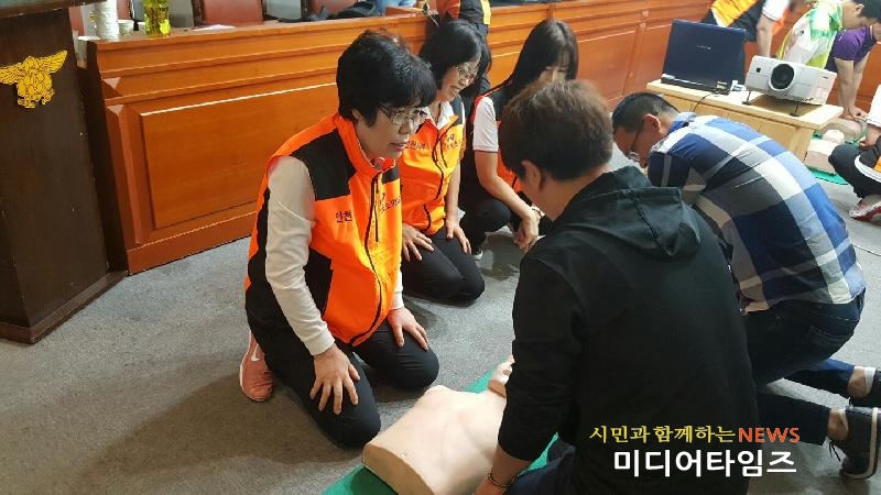 [미디어타임즈=홍기연 기자] 인천서부소방서(서장 김준태)는 지난 30일(수) 본서 3층 소회의실에서 서구 태권도협회 회원 40여 명을 대상으로 ‘4분의 기적’ 심폐소생술(CPR) 및 소방안전교육을 실시했다고 전했다.인천서부소방서의 협조로 이뤄진 이번 교육은 심정지 환자가 발생됐을 때 신속하고 정확한 대응 능력을 키울 수 있도록 실습위주로 진행됐다. 이 날 교육은 인천서부소방서 구조구급팀과 의용소방대 전문교육강사가 위급상황에서 심폐소생술의 필요성, 심폐소생술의 순서, 심폐소생술 방법, 자동심장충격기 기계 사용법에 대해 살펴 보고, 기도폐쇄 응급처지 방법, 복부 밀어올리기 등을 직접 체험했다. 심정지 환자 발생시 4분의 골든타임에 3GO (깨우고, 알리고, 누르고)로 소중한 생명을 구할 수 있음을 상기시켰다. 이 후 흉부압박부터 인공호흡까지의 심폐소생술 순서와 방법을 익힌 태권도 협회 회원들은 마네킹을 활용해 흉부압박과 인공호흡을 직접 체험하게 했다. 소방서 관계자는 “`4분의 기적`심폐소생술을 널리 교육하여 내 주변의 가족과 이웃의 생명을 구할 수 있도록 안전문화 확산에 더욱 힘쓰겠다”고 말했다.