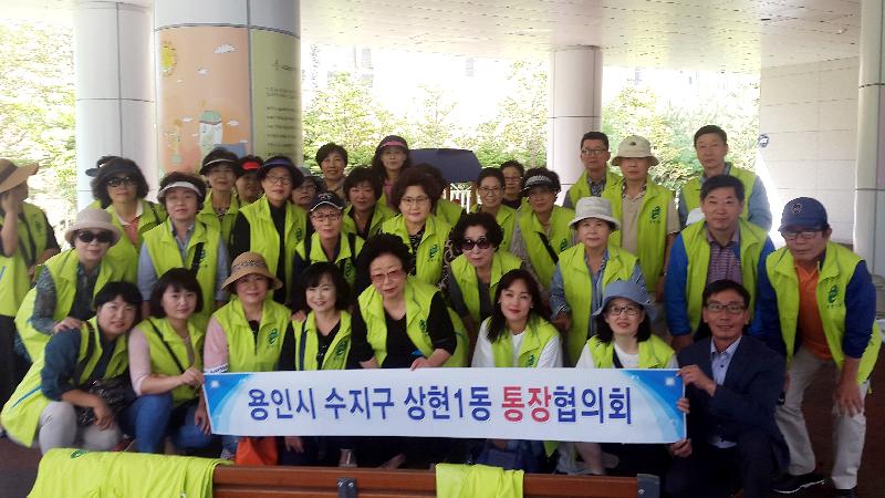 이날 상현1동 통장 44명은 상현도서관~원천리천 왕복 5km 구간에 버려진 쓰레기 1톤을 수거했다.