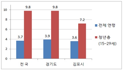 반면 김포시의 청년층 실업률은 7.2%로 전국·경기도의 평균 보다 무려 2.6%포인트가 낮았다.