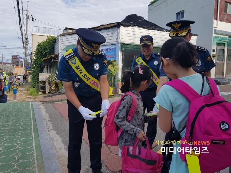 [미디어타임즈=문상수 기자] 인천중부경찰서(서장 안영수)는 31일 개학기를 맞아 어린이들의 안전한 통학로 조성을 위해 등굣길 어린이 교통안전 캠페인을 실시했다.동구 창영동 창영초등학교 어린이보호구역(스쿨존)에서 진행된 이번 캠페인에는 중부경찰서 안영수 서장을 비롯한 경찰 및 학교 관계자 등 70여명이 참여했다. 경찰은 이날 등·하교하는 어린이들의 사고 예방율을 높이기 위해 시인성이 뛰어난 ‘옐로카드’를 가방에 부착하고 횡단보도를 이용하여 등교하기 등 스쿨존 사고 예방에 총력을 기울였다. 안영수 중부경찰서장은 “어린이들의 안전보행습관도 중요하지만 학부모들 또한 스쿨존 내에서 일어날 수 있는 교통사고 예방을 위하여 학교 앞 주정차 금지 및 제한속도 30km 준수 등 기본적인 교통법규를 꼭 지켜줄 것”을 당부했다.