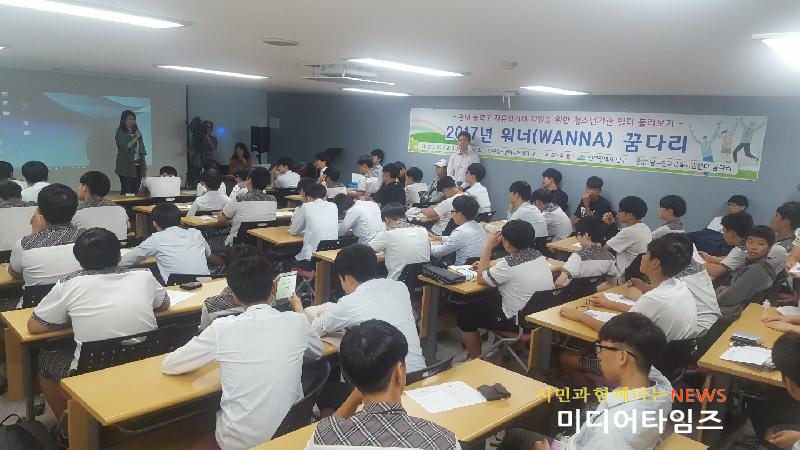 [미디어타임즈=문상수 기자] 인천 남구진로교육지원센터가 지난 31일 청소년기관 업무 종사자의 직업을 탐방하는 일터 둘러보기 프로그램인 ‘워너꿈다리’를 시범 운영했다.프로그램에는 용현중학교 학생 60여명이 참여했다.워너꿈다리는 ‘101개의 꿈을 이어주는 다리’라는 뜻으로 용현중학교의 요청에 따라 남구진로교육지원센터 ‘꿈다리’가 운영하는 자유학기제 프로그램 중 하나다.오리엔테이션을 시작으로 남구진로교육지원센터·남구청소년상담복지센터 조직과 주요업무에 대해 알아보는 멘토와의 만남, 체험활동 순으로 진행됐다.특히 체험놀이 활동에는 학부모진로지원단이 준비한 공정무역 코코아 & 샌드위치 만들기, 코이스토리 팽이놀이, 씨앗카드를 활용한 친구와의 마음 공유 등 다양한 프로그램도 제공했다. 센터 관계자는 “학부모진로지원단과 함께 더 좋은 청소년프로그램을 마련해 청소년의 미래에 대한 불안과 고민을 덜어주고 싶다”며 “친구와 함께 즐거운 추억을 만들 기회도 제공하도록 노력하겠다”고 말했다.