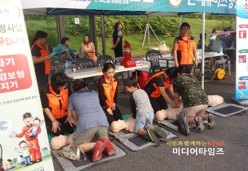 [미디어타임즈=문상수 기자] 인천남부소방서(서장 김성기)는 3일 용현동 SK스카이뷰 인근 용정공원 에서 열린「용현동 SK스카이뷰 한마당 대축제」에 참가하여 안전문화 확산을 위한 ‘119안전체험 부스’를 운영했다.이날 체험은 행사장을 찾아온 온가족이 함께 안전체험을 할 수 있는 프로그램으로 구성하여 진행하였으며, 주요 체험내용으로 ▲연기소화기를 이용한 소화기 체험 ▲마네킨을 활용한 심폐소생술 체험 ▲어린이들에게 안전에 대한 흥미를 유발시키기 위한 소방차 종이모형 접기 ▲주택용 소방시설 설치 안내 홍보 등을 실시하였다.소방서 관계자는 “연기소화기, 심폐소생술, 소방차 종이모형 접기 등을 체험하면서 짧은 시간이었지만, 어린이들이 소방안전에 대해 배우고 즐기는 모습을 볼 수 있었다.” 며 “앞으로도 더 많은 지역행사에서 시민들이 체험할 수 있도록 체험부스 운영을 활성화 해 나갈 방침”이라고 전했다